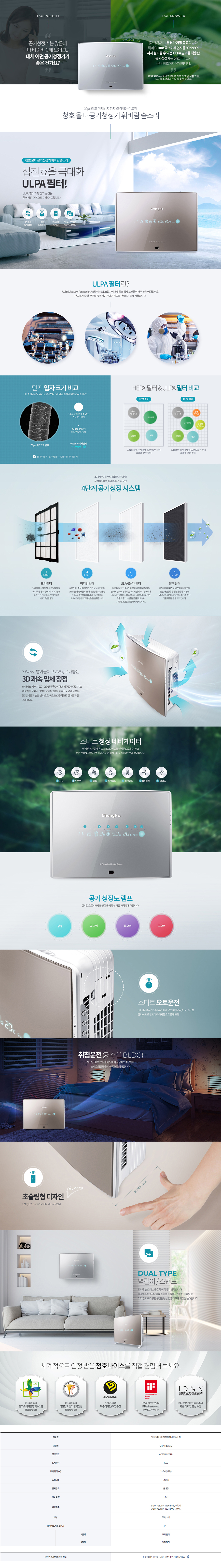 모델명 : CHA-N500AU 색상 : 실버 청정면적: 29.5㎡(8.9평) 필터: 프리, 미디엄, 울파, 탈취